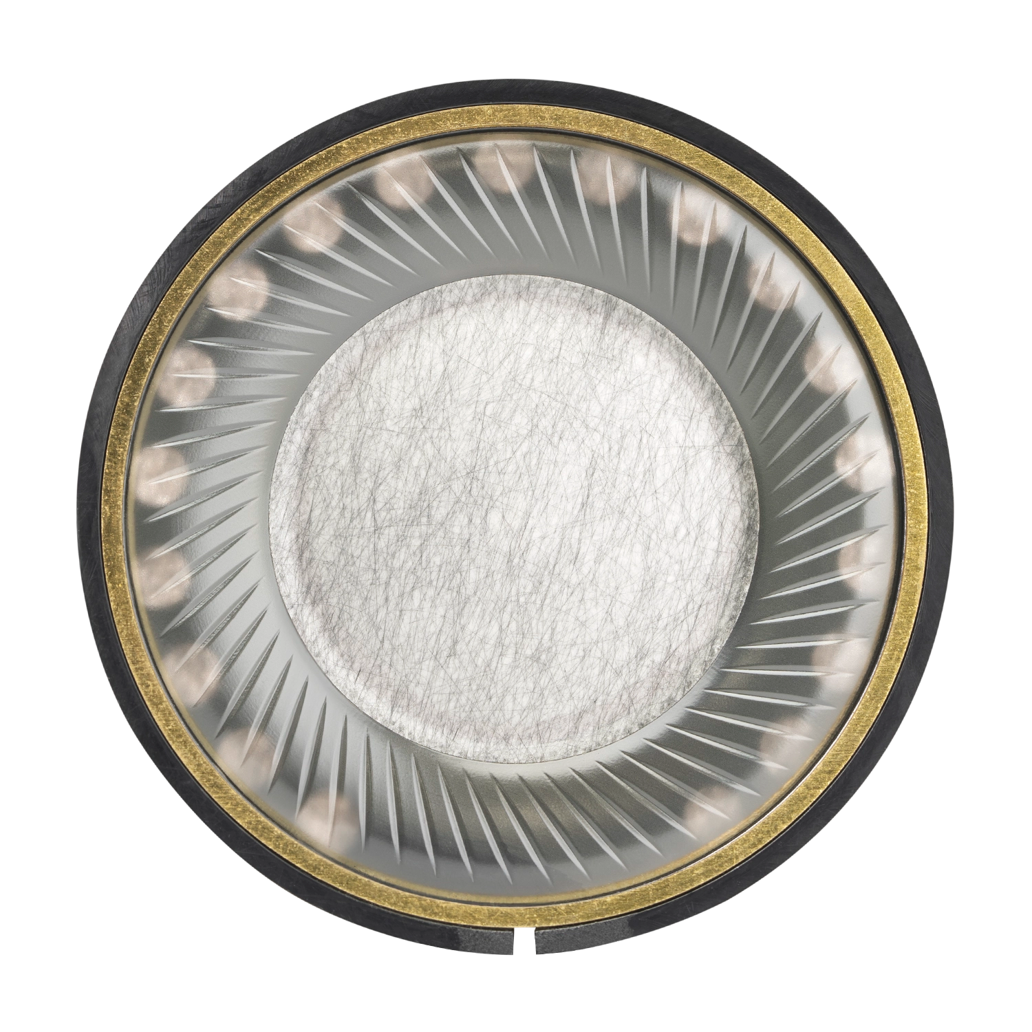 La membrane entourant le dôme est en PEEK (Polyether Ether Ketone), un polymère semi-cristallin aux excellentes propriétés mécaniques. La résistance à la rupture et la rigidité élevés du PEEK permet au driver de conserver son intégrité structurelle même lorsqu’elle est soumise à un fort stress, tandis que sa légèreté lui permet une réponse plus rapide aux signaux audio. L’accent est donc à la dynamique et aux détails, donnant vie à chaque note et nuance musicale. Enfin, le PEEK possède d’excellentes propriétés anti-vibratoires, et réduis d’autant les résonances et vibrations non contrôlées.