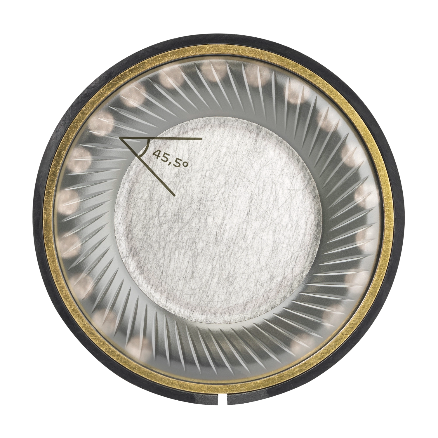 Fabriqué en cellulose renforcée de fibres de carbone, le dôme du transducteur est en mesure de reproduire les hautes fréquences avec une incroyable définition, dynamique, détail et fidélité. Bien plus durable et légère que les alternatives usuelles employées sur les drivers dynamiques classiques, ce matériau composite aide à réduire les résonances néfastes pouvant conduire à de la distorsion.