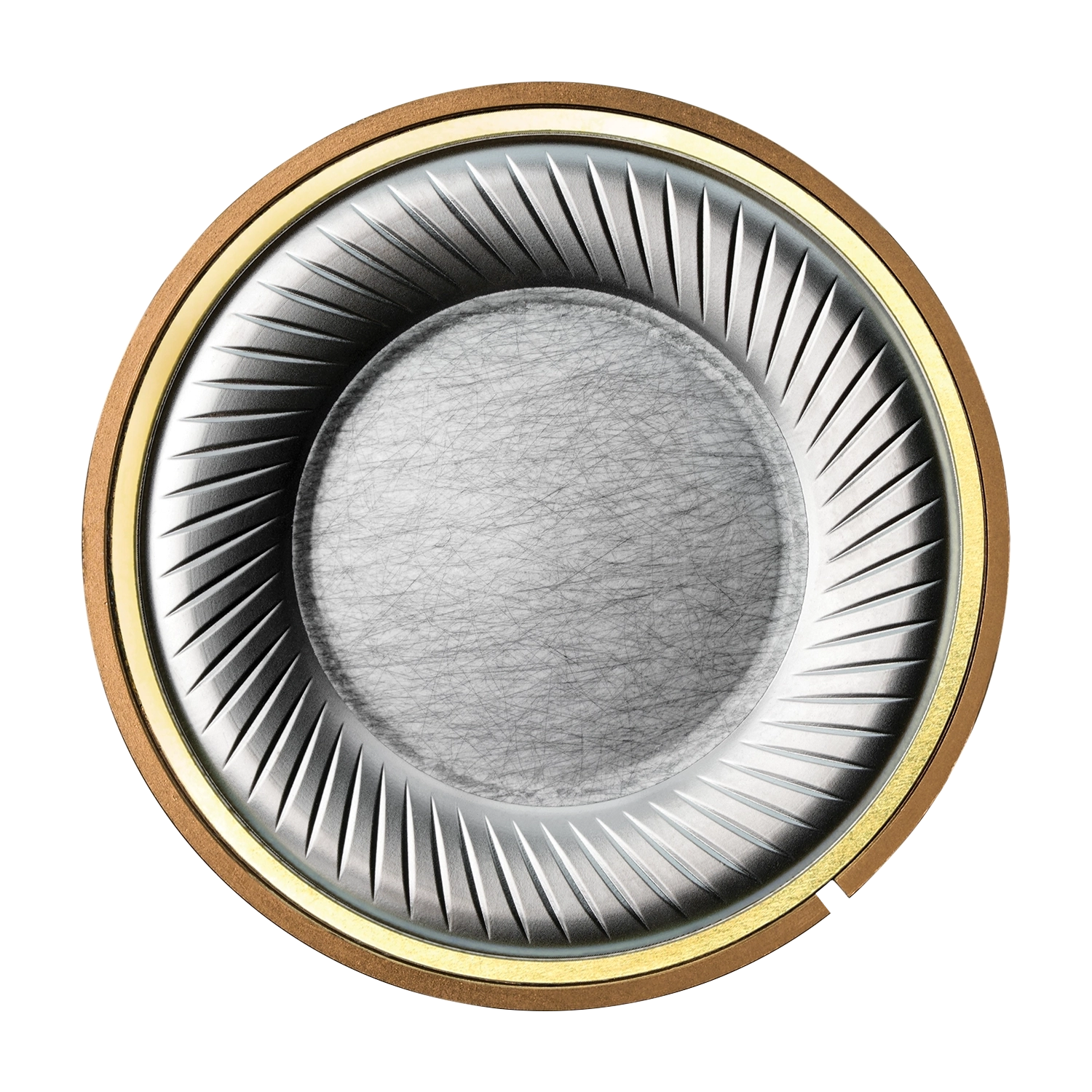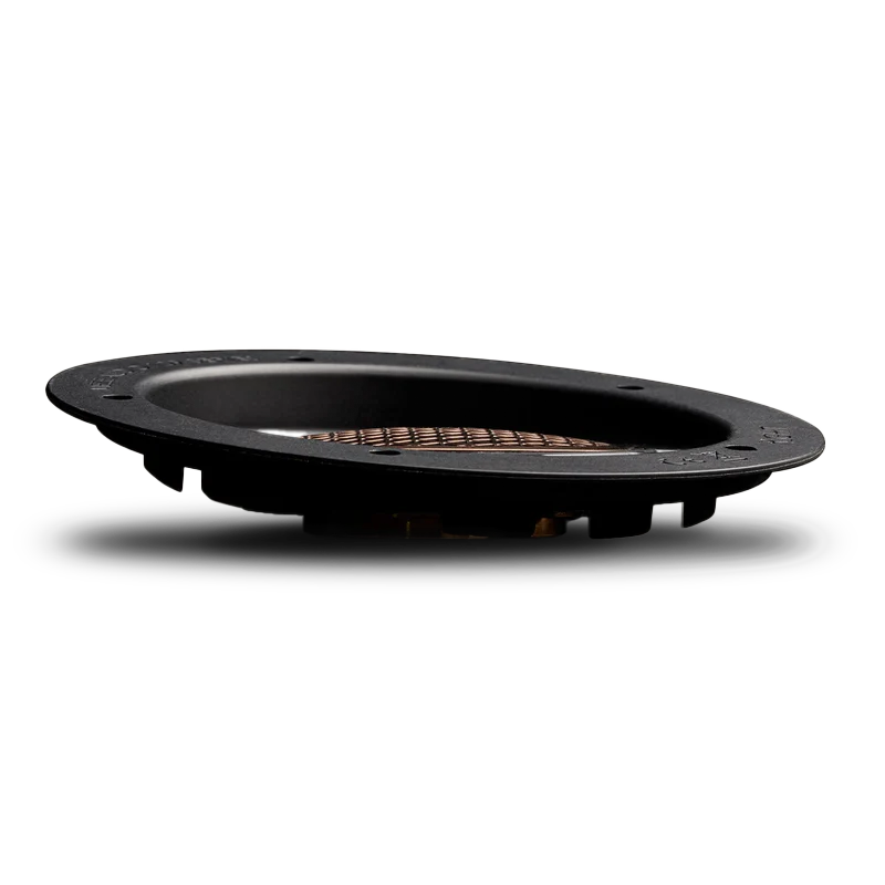 Fabriqué en composite de cellulose renforcé de fibres de carbone, le dôme reproduit les hautes fréquences avec un niveau de détail, de clarté et de définition exceptionnel. Plus résistant que les alternatives conventionnelles utilisées dans les haut-parleurs dynamiques, tout en étant léger, ce composite contribue à réduire les résonances susceptibles d'entraîner une distorsion harmonique.