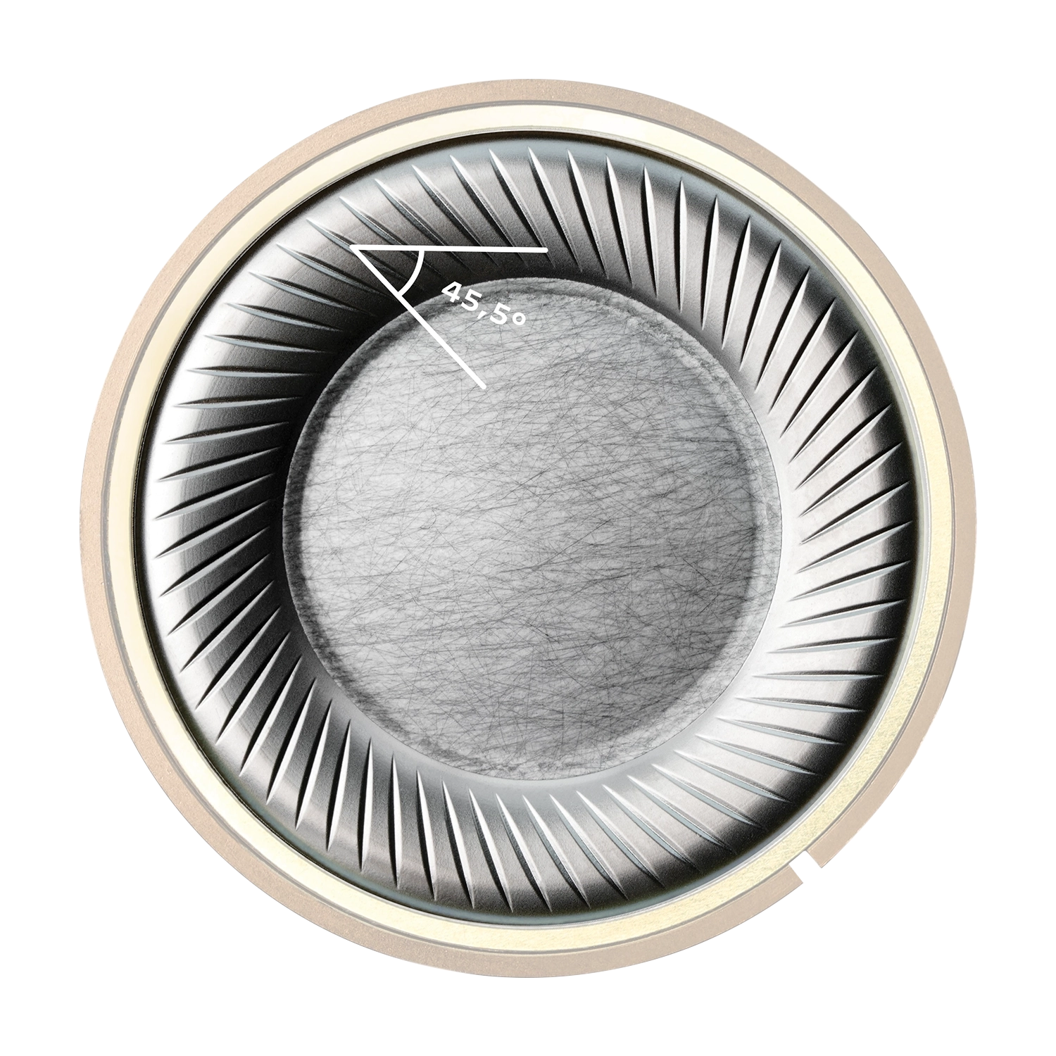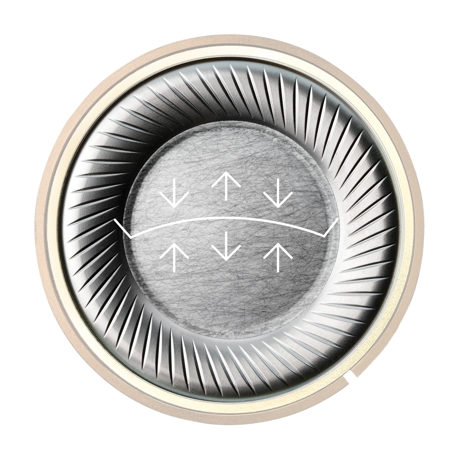 La structure en forme d'araignée et la grille acoustiquement transparente à l'intérieur de l'écouteur exposent le pilote des deux côtés, créant ainsi notre modèle le plus ouvert à ce jour.