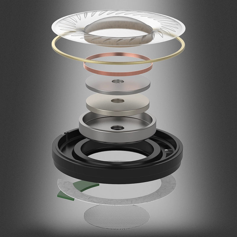 Le cadre du driver a été repensé pour maximiser la transparence acoustique. Une grille plus ouverte et des renforts affinés réduisent la diffractions et l’impédance, minimisant les artefacts dans les plus hautes fréquences.