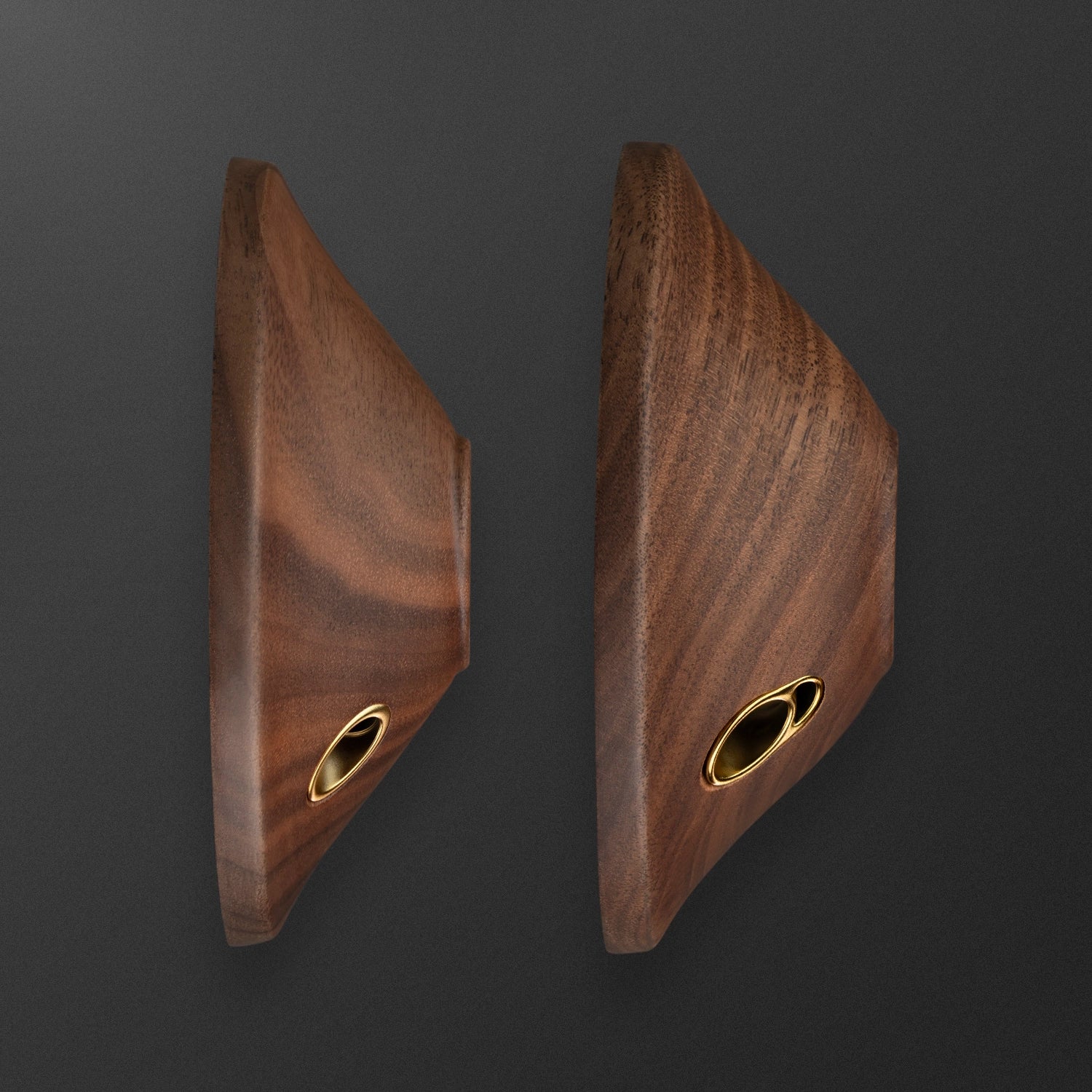 Treasured for its rich, dark color and beautiful grain, walnut wood is strong and durable, yet lightweight and malleable. The cups are CNC-machined, then hand-finished, stained, and polished.