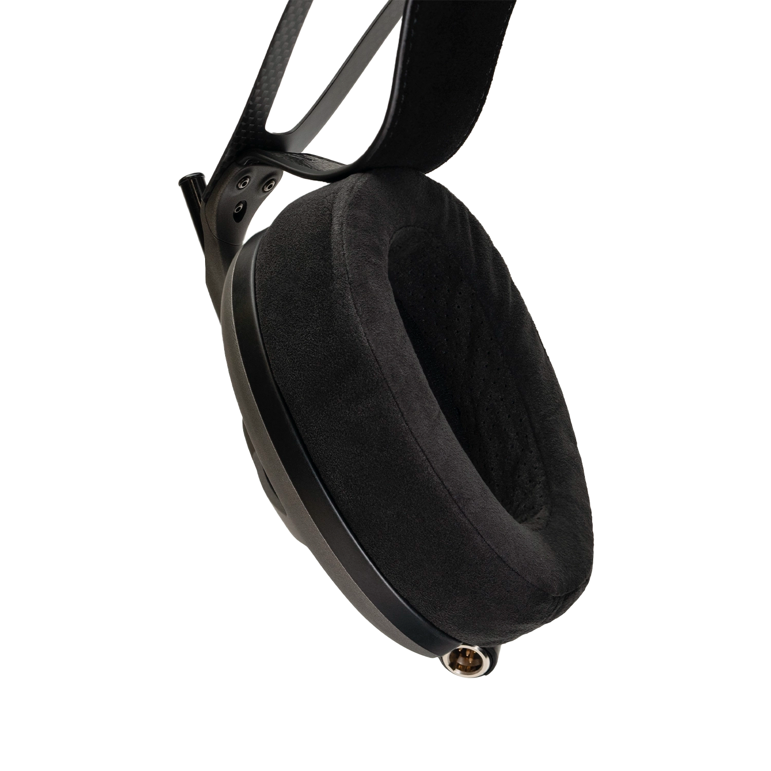 Fabriqués en mousse souple recouverte d’Alcantara® et dotés d’une fine grille de protection, les coussinets Angled excellent dans la restitution des détails et des nuances de vos enregistrements. Leur forme inclinée crée davantage d’espace à l’intérieur du coussinet, ce qui se traduit par une signature sonore plus aérienne, des basses plus précises et une meilleure présence dans les fréquences médiums lorsqu’ils sont associés à l’Empyrean II. Le résultat est une expérience d’écoute détaillée et fidèle, pensée pour l’audiophile exigeant.
