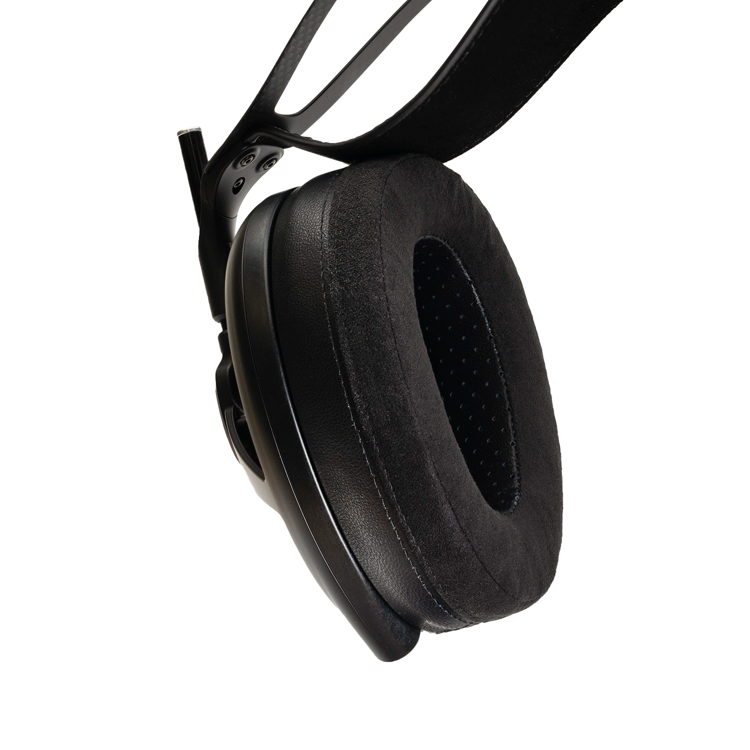 Nos coussinets Duo ont été spécialement conçus pour s’accorder parfaitement avec l’Empyrean II. Confectionnés à partir d’un mélange précis de cuir haut de gamme et d’Alcantara®, ils apportent une dimension contemporaine au profil sonore signature de l’Empyrean II.